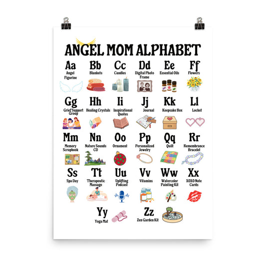 Angel Mom Alphabet Poster, Bereaved Mom Gift, Grieving Mom Gift, Sympathy Gift UNFRAMED