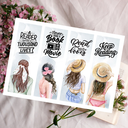 Printable Cute Girl Reading Quotes Bookmarks- DIGITAL DOWNLOAD
