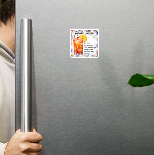 Tequila Sunrise Cocktail Recipe Magnet, Cocktail Lover Gift, Tequila Sunrise Recipe Magnet, Bar Decor, Fun Bar Gift