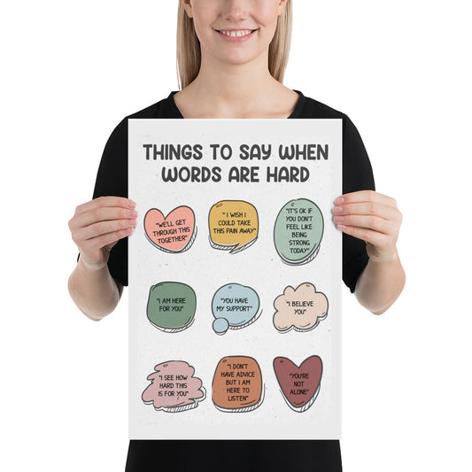 Things to say When Words are Hard Poster, Motivational Wall Art, Mental Health Decor UNFRAMED