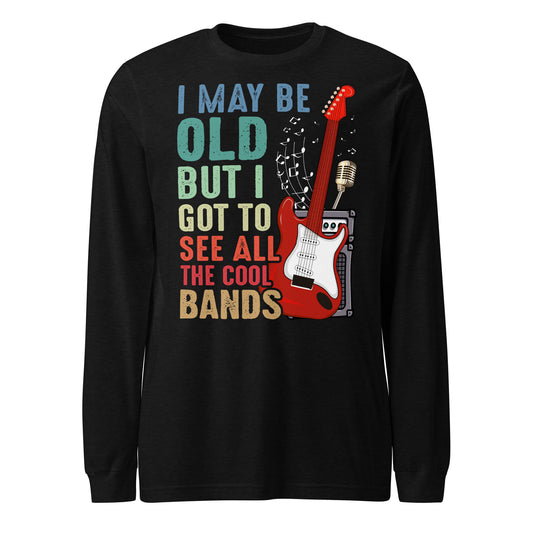 I May Be Old But I Got to See All the Cool Bands, Vintage Music Lover Shirt, Concert Gift, Rock Fan Long Sleeve Tee