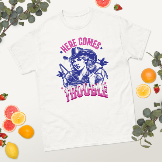 Here Comes Trouble T-Shirt, Cowgirl Gift Tee, Western Style Shirt, Rodeo Girl, Country Girl