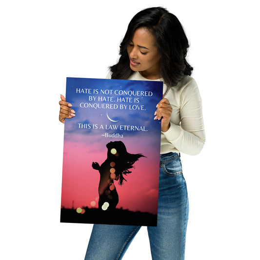 Inspirational Buddha Quote Poster – “Hate is Conquered by Love” Wall Art for Peace & Mindfulness UNFRAMED
