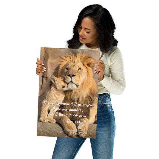 Lion and Cub Inspirational Poster – “Love One Another” John 13:34–35 (UNFRAMED)