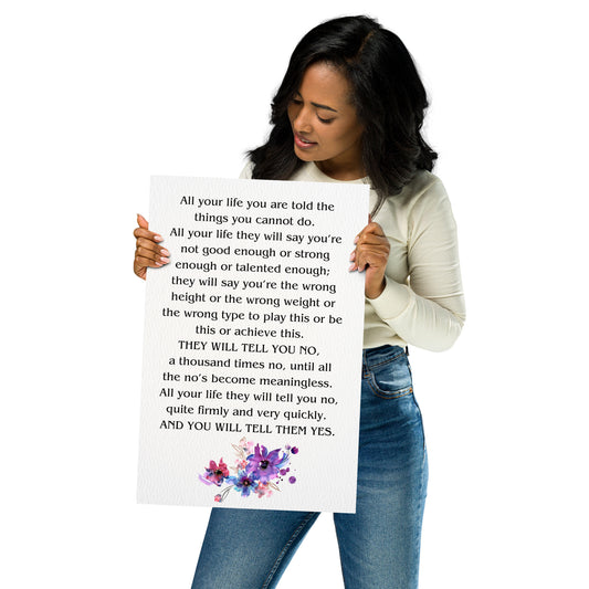 Inspirational “You Will Tell Them Yes” Motivational Quote Poster UNFRAMED