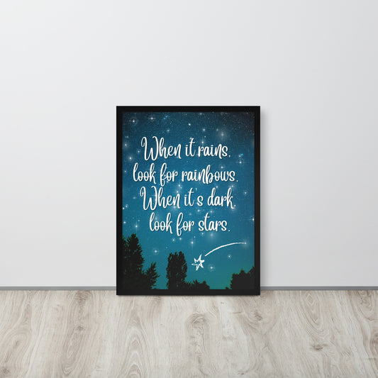 Inspirational Poster, Look for Rainbows Wall Print, Motivational Wall Art, Look for Stars Decor FRAMED