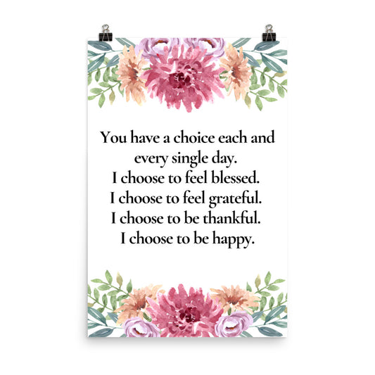 Motivational Poster, Uplifting Decor, Inspirational Quote, Gratitude and Happiness Poster UNFRAMED