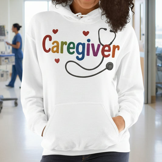 Colorful Caregiver Hoodie with Faux Yarn Embroidery