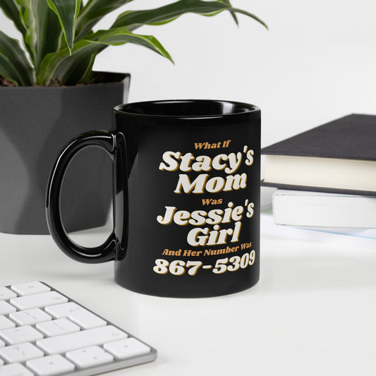 Funny 80s Retro Stacy’s Mom & Jessie’s Girl Black Glossy Mug