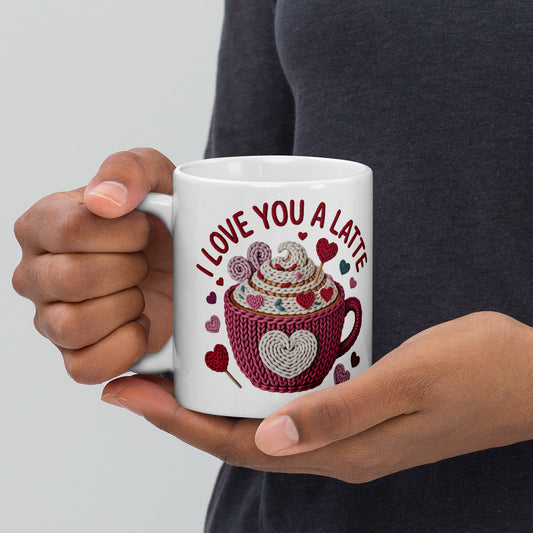 Love You a Latte, Coffee Yarn Design White glossy mug