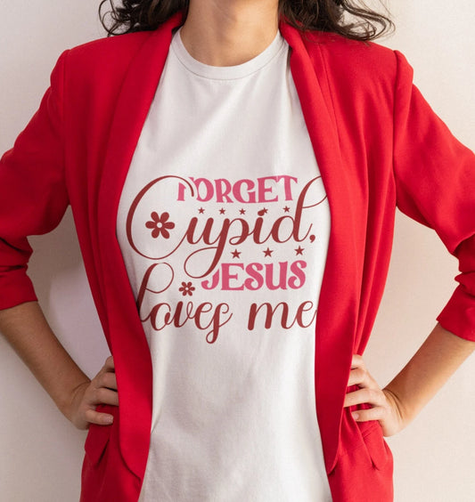 Forget Cupid, Jesus Loves Me T-Shirt, Christian Valentine's Tee, Jesus over Cupid Shirt, Valentine's Day Gift
