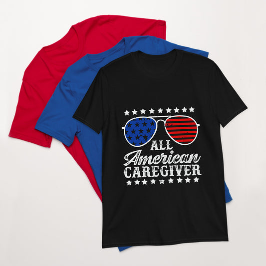 All American Caregiver Shirt, Patriotic Caregiver T-Shirt, Caregiver Gift, Caregiver Nurse Tee