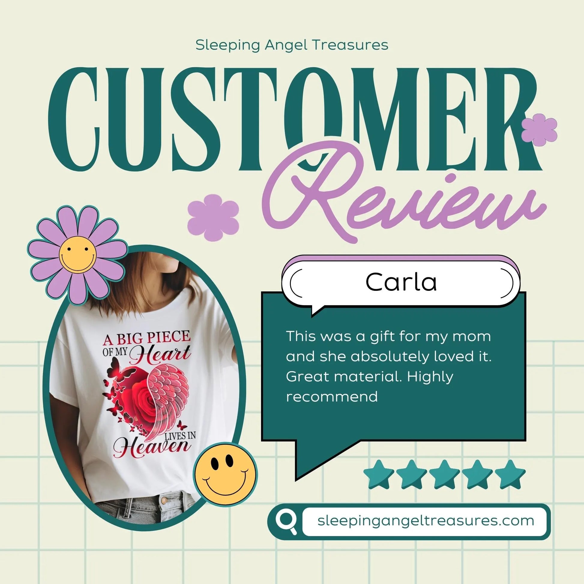 This heartfelt Sympathy T-Shirt features the phrase “A big piece of my heart lives in Heaven” with a rose and butterflies design, perfect for expressing love and remembrance. Ideal for those grieving the loss of a loved one, this unisex tee is a comforting memorial gift to wear during remembrance events or daily life, offering solace and honoring cherished memories with style and grace.