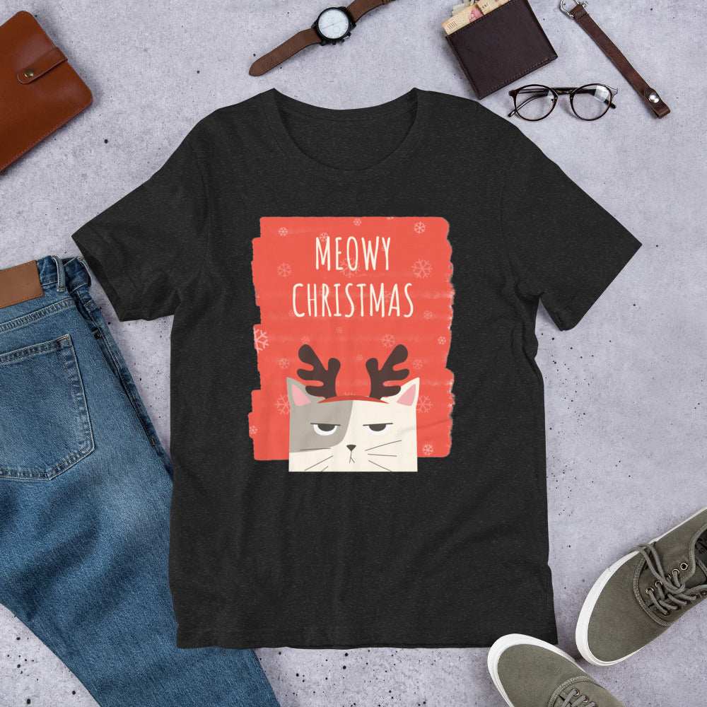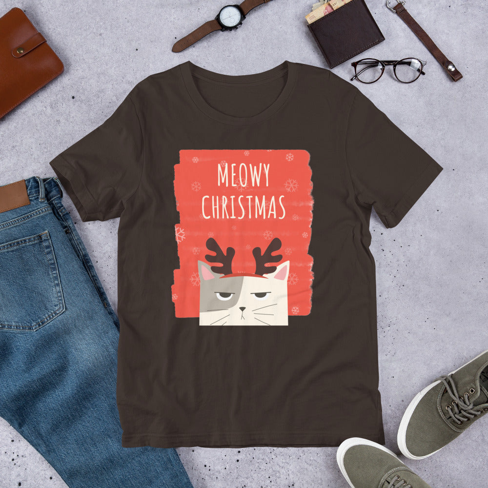 Meowy Christmas Shirt, Cat Christmas Gift, Cat Lover Xmas T-Shirt, Christmas Cat Mom Shirt, Catmas Gift For Xmas