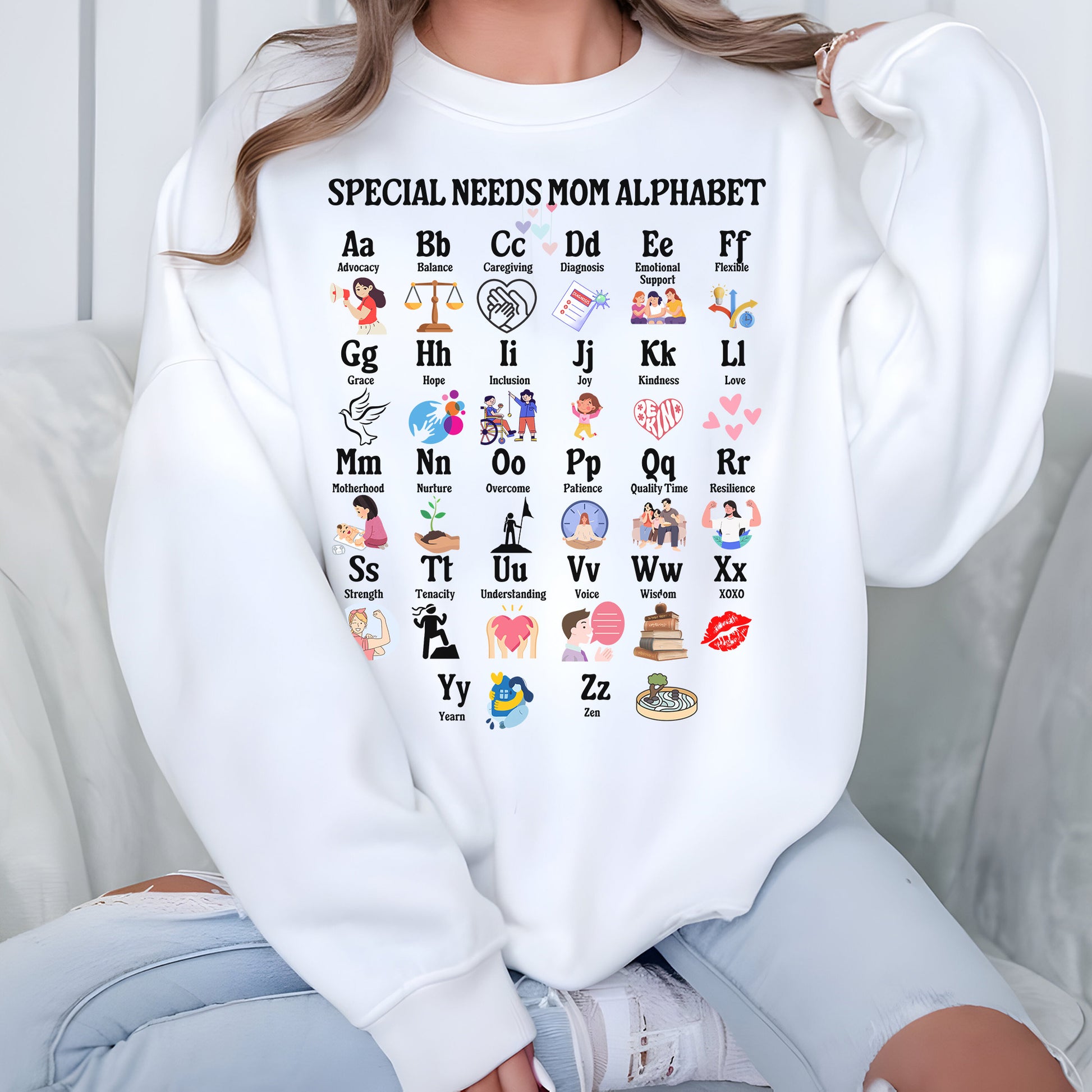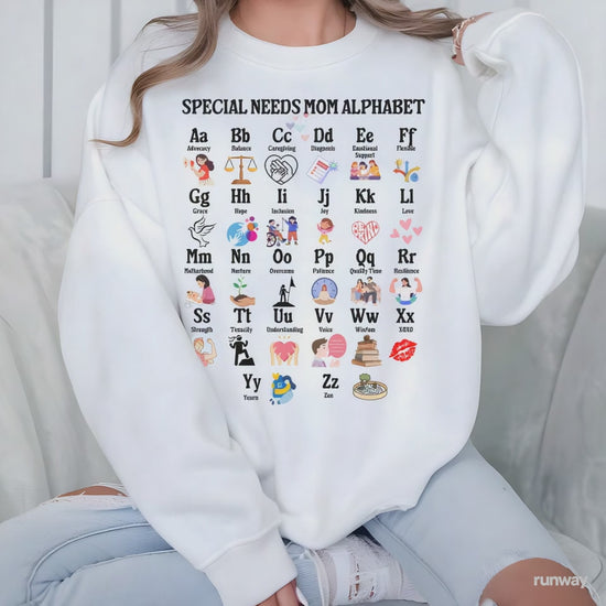Show your pride and love as a Special Needs Mom with this heartfelt “Special Needs Mom Alphabet” Sweatshirt. Designed to celebrate strength, inclusion, and awareness, this cozy top reminds every mom of the beautiful journey she’s on. Perfect for Mother’s Day, Autism Awareness Month, or everyday wear, it’s more than just a sweatshirt — it’s a symbol of acceptance, pride, and unconditional love. Whether you're a medical mom, autism mom, or advocate for neurodiversity, this sweatshirt is a warm, empowering way to share your story and inspire others.