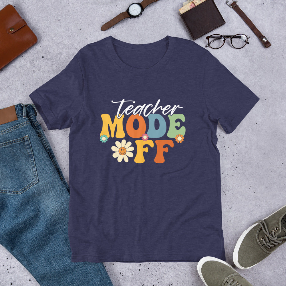 Get ready to show your appreciation for all the hardworking teachers out there with this "Teacher Mode Off" shirt! Whether it's the last day of school or the start of summer break, this funny and stylish tee is the perfect gift to celebrate the end of the school year. Let your favorite teacher relax in style and humor with this cool shirt that captures the essence of teacher life. Say goodbye to the school year in a fun and fashionable way with this "Teacher Mode Off" tee!